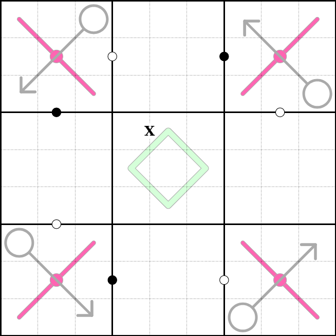 Values along the lockout lines must be outside the range give by the diamonds at the ends, which differ by at least 4.