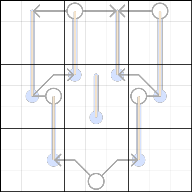 Note: This is an inferior puzzle to Flux Resistor, which follows, due to too much unnecessary furniture in the grid. However, that does make it an easy-breasy quick solve.